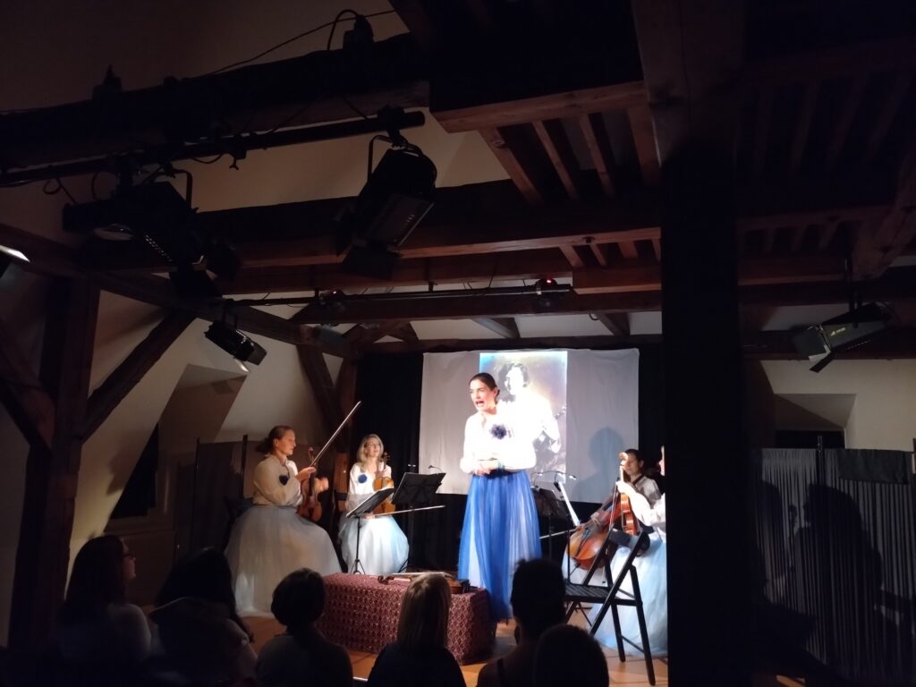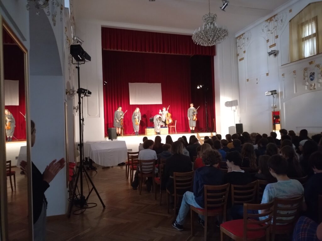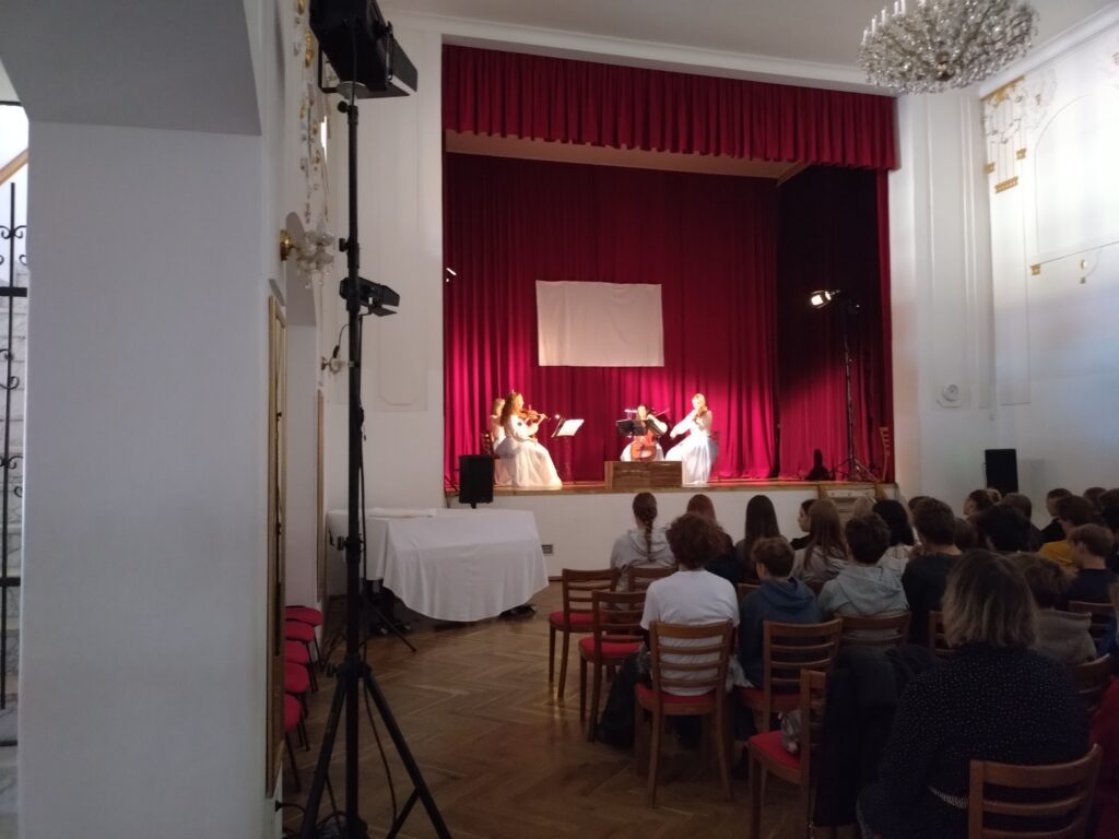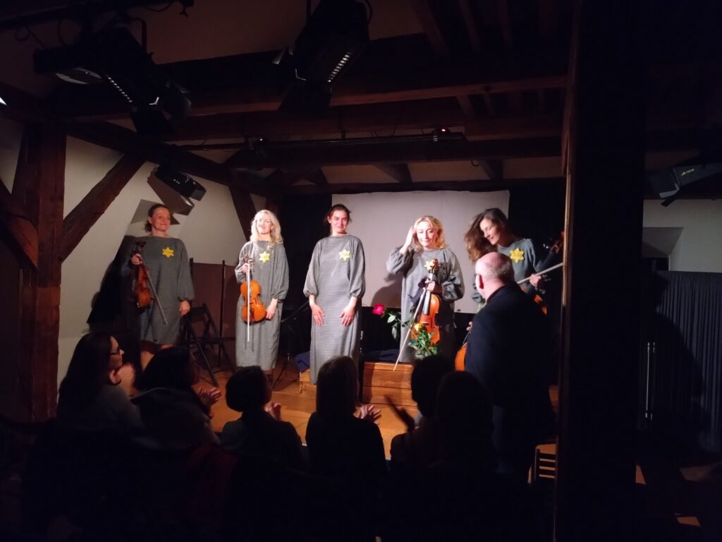 Ve Winternitzově vile. To byl obzvlášť silný zážitek. Hráli jsme 8. 11. 2023 dopoledne pro Lauderovu školu a Bratrskou školu církevní. Následovala beseda s paní Michaelou Vidlákovou a pak pro večer pro veřejnost. Byl to nádherný zážitek. Fotografie Francesco Sanvito a EK.
